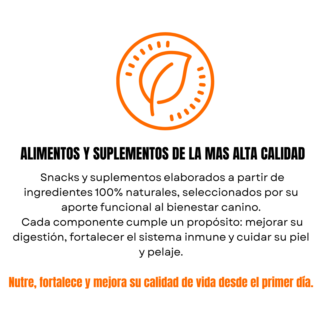 Elaborados con carne de res y zapallo camote, sin conservantes ni aditivos artificiales. Estos premios no son solo un gusto: son parte de una nutrición honesta, hecha en Chile, pensada para su salud diaria.